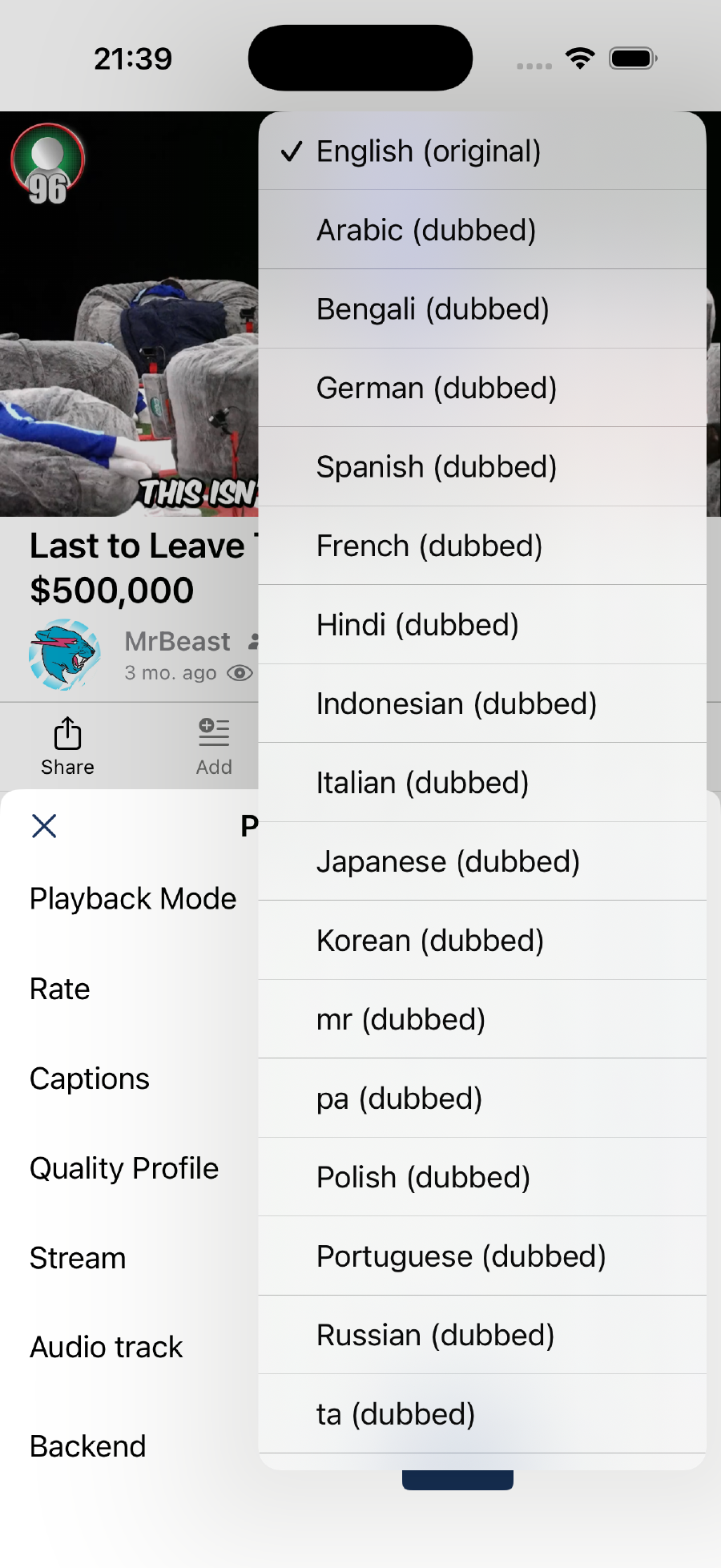 I wanted to solve a practical playback issue: on YouTube adaptive streams, a video can expose multiple audio tracks (different languages, dubbed tracks, original audio), but switching between them in Yattee was not even possible in the player UI.